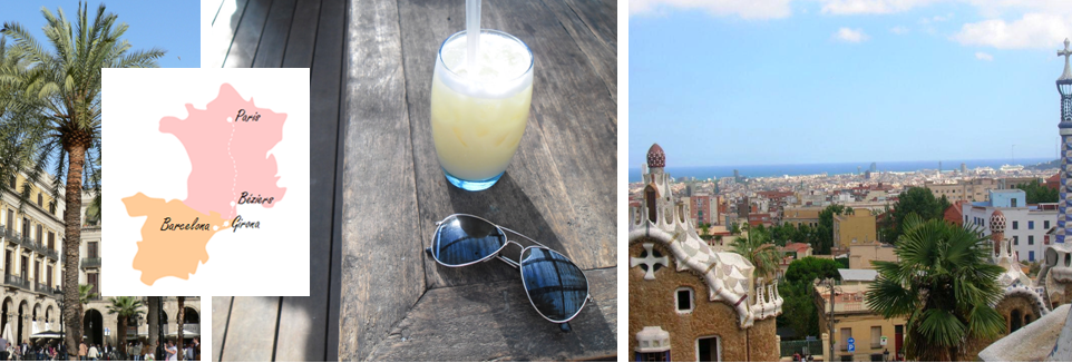 Mardi 13 août, après une petite pause déjeuner à Gérone, nous voilà arrivés à Barcelone ! Rendez-vous avec ma sœurette à la plage de Barcelonetta pour fêter son anniversaire autour d’un assortiment de glace et en sirotant une Pina Colada. Au programme du soir, un petit tour à la Plaza Real puis dîner dans un restaurant branché de tapas, quelque part dans les dédales de Las Ramblas. Le lendemain, réveil à 10 heures et plongeon dans la piscine pour commencer la journée de bonne humeur, puis dégustation de donuts, carrot cake et muffins au Starbucks . Il fait beau, il fait chaud, on quitte l’hôtel et on profite un peu avant de repartir de plus belle !