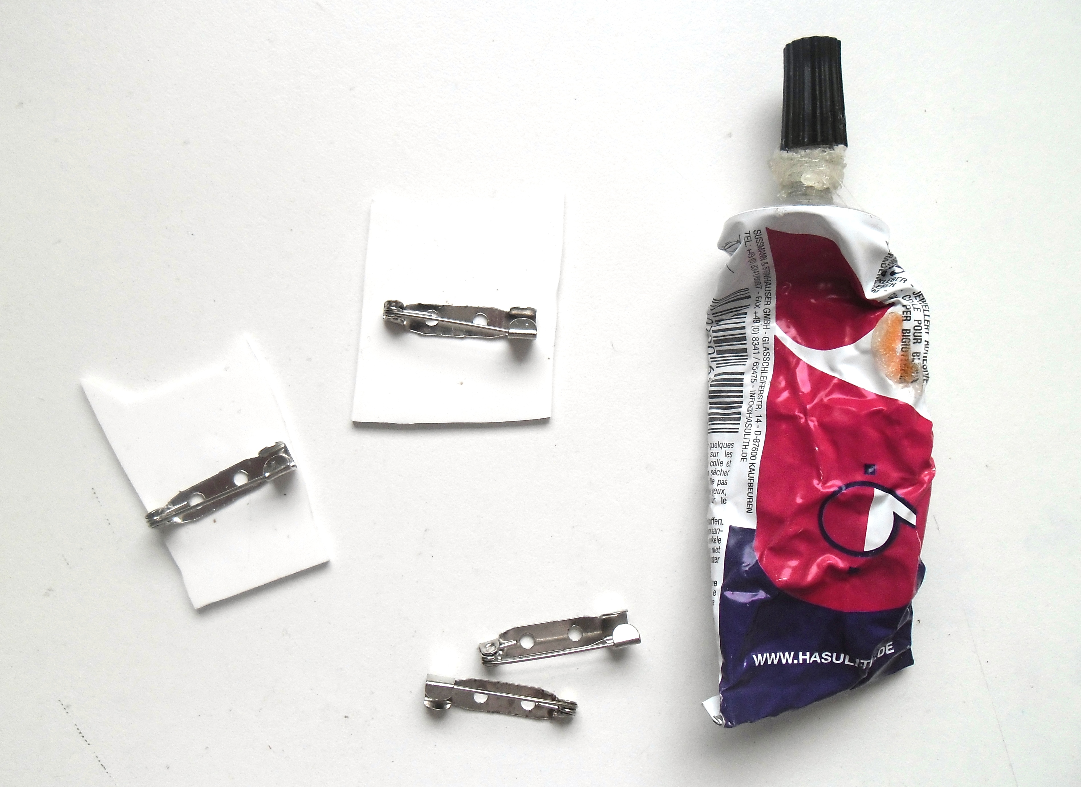 Pour confectionner ses propres petites broches fantaisie, il suffit d’un lot de feuilles de plastique « dingue », de stylos billes, de supports de broches et de colle forte.