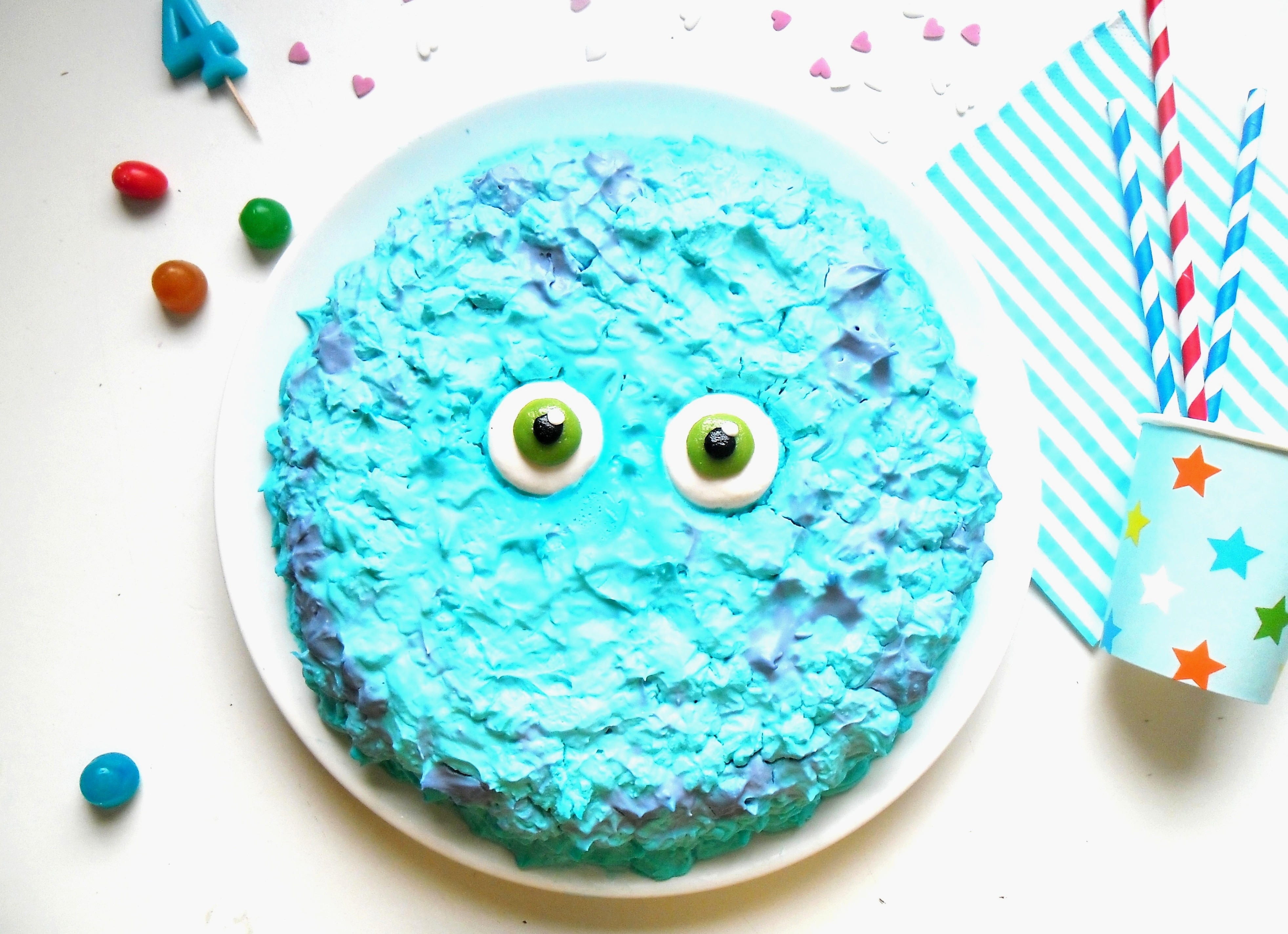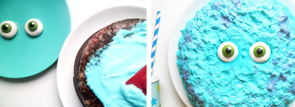 Shayan a voulu fêter ses 4 années sur le thème  » Monstres Academy  » … Alors, hop hop hop, c’est parti pour un gâteau chocolat & mascarpone aux couleurs de Sully, gros monstre poilu et si gentil !