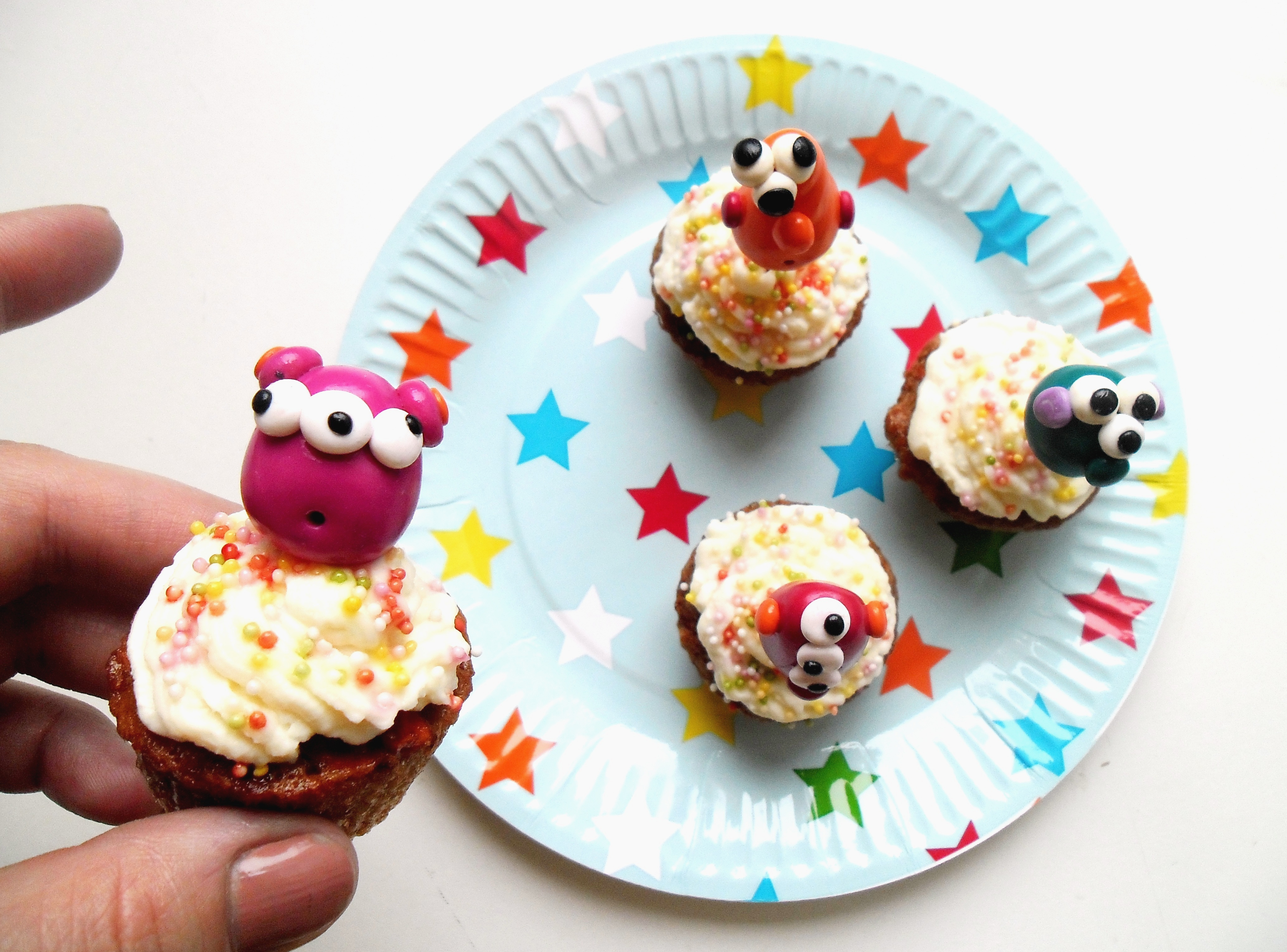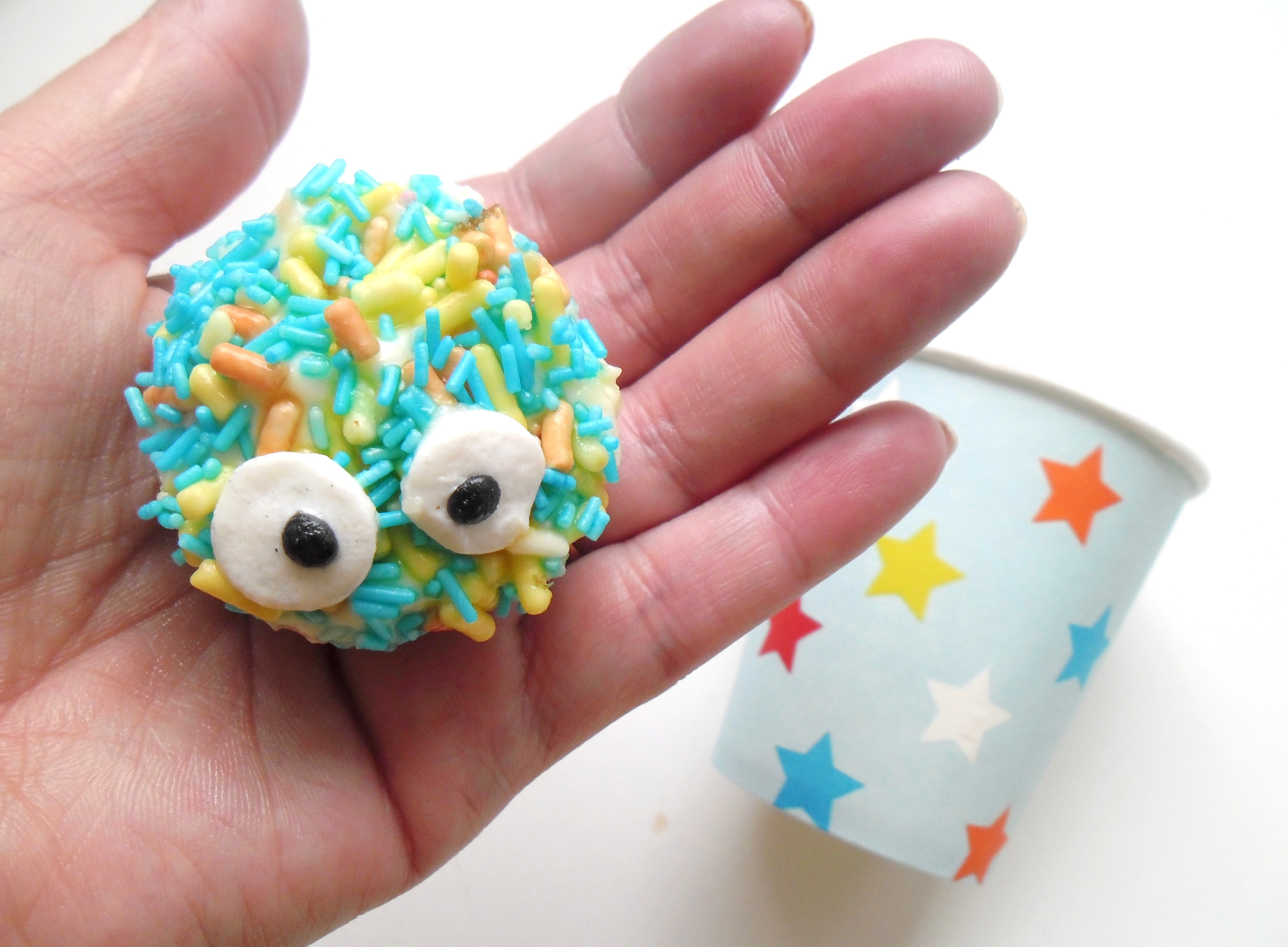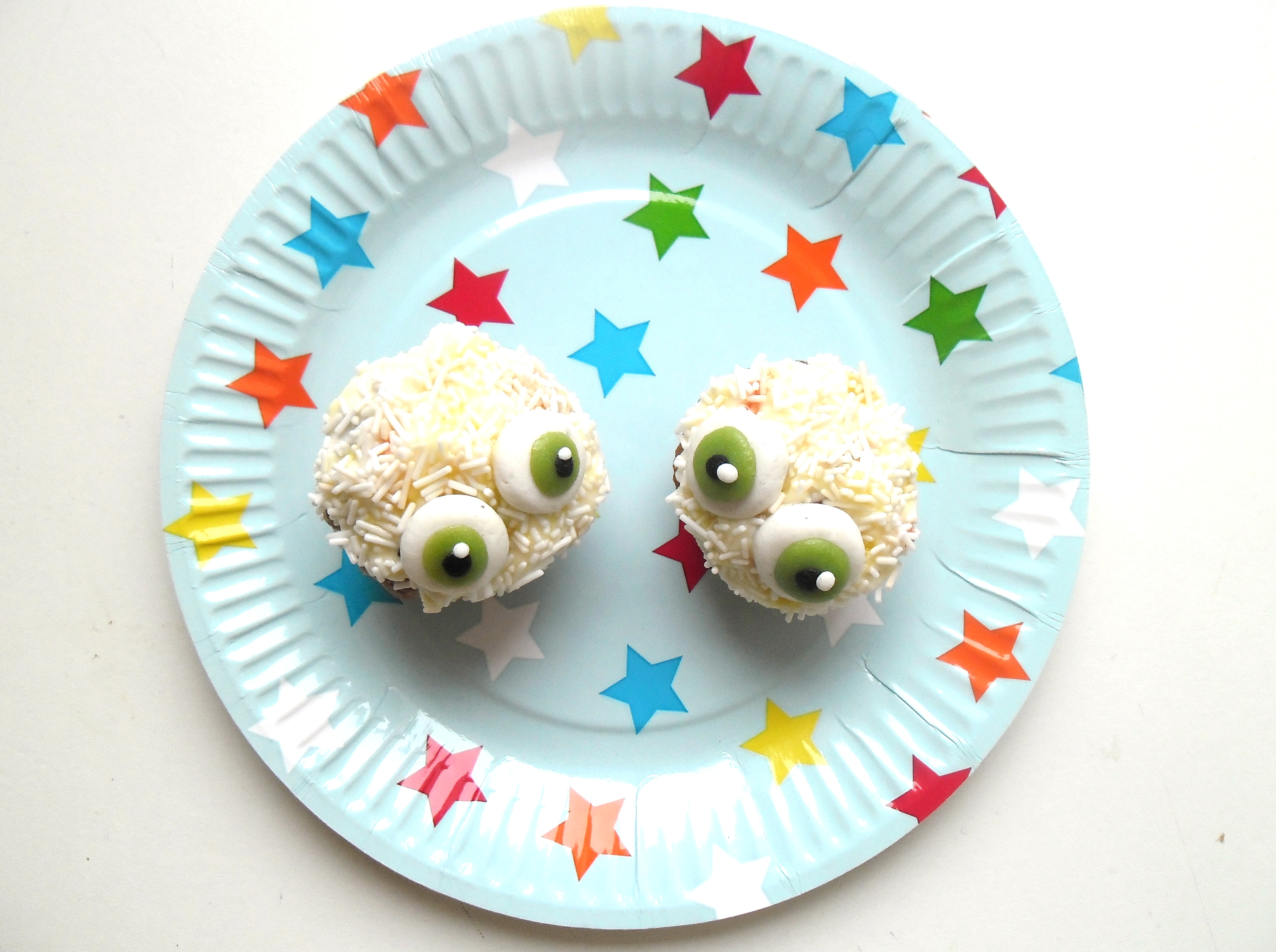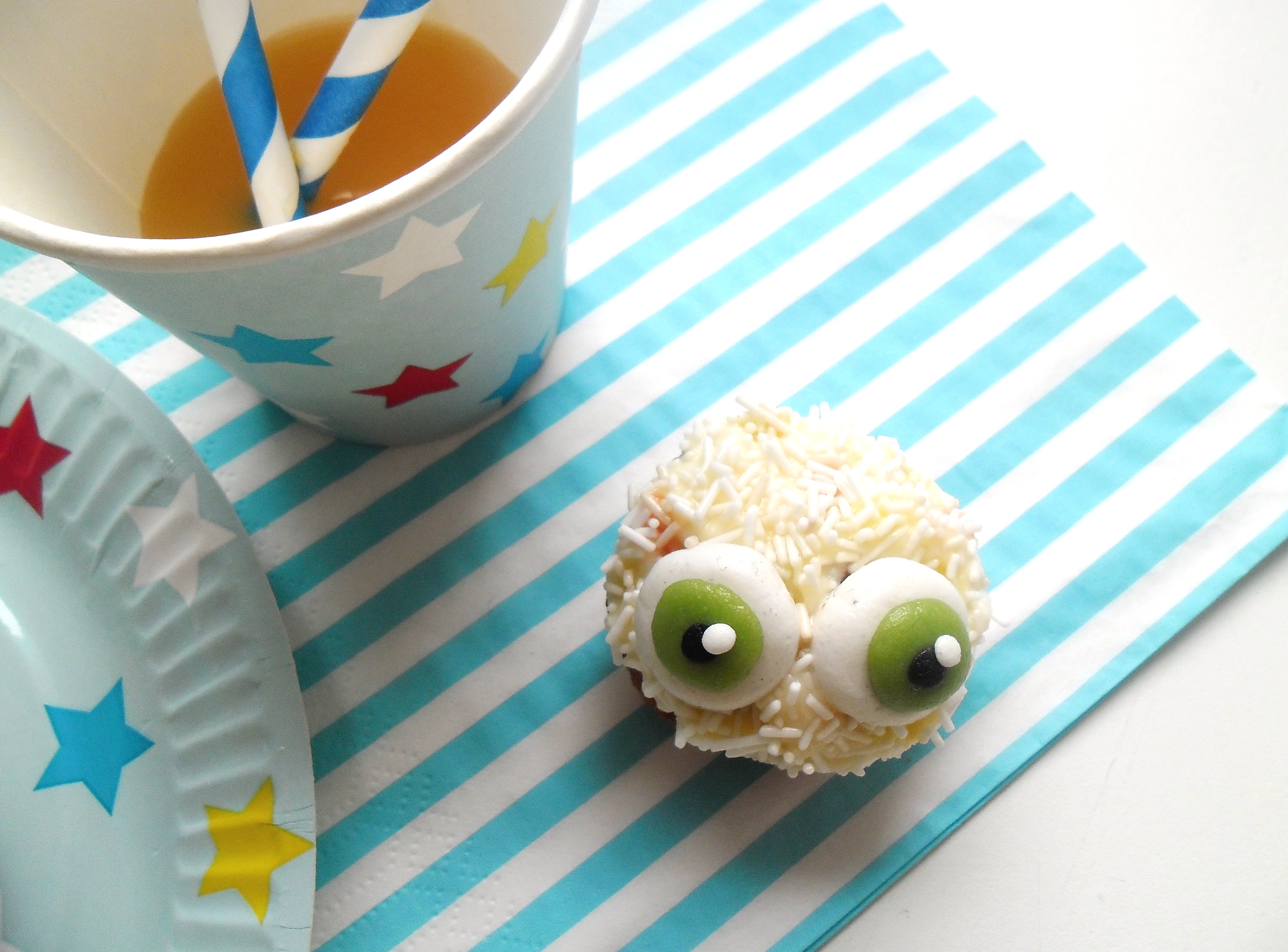Qu’ils soient bleus, jaunes, blancs ou multicolores … avec un oeil ou deux ou plus encore … de ces petits cupcakes monstrueusement sucrés, les enfants n’en ont fait qu’une bouchée !