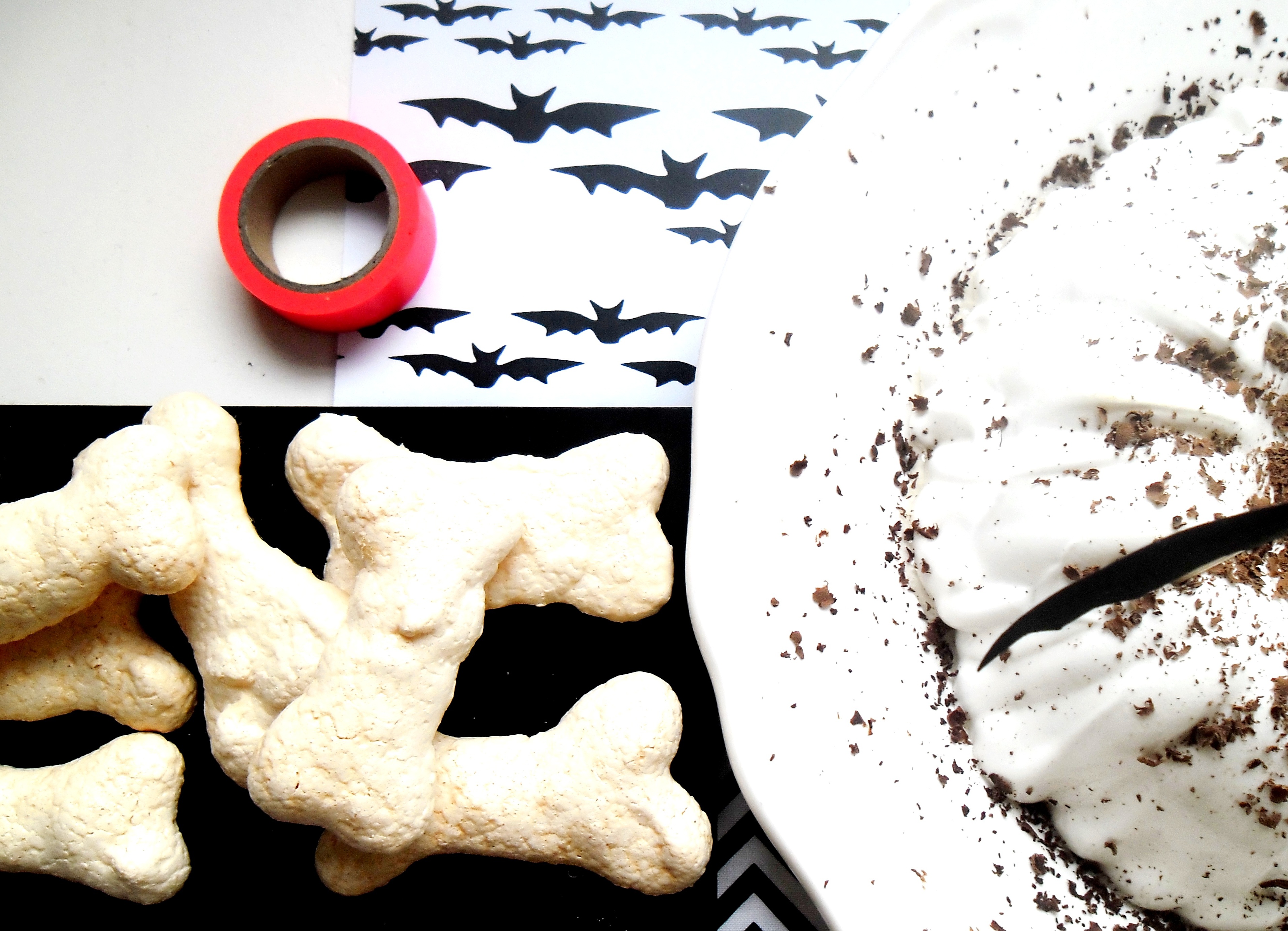 … après le gâteau au potimarron meringué , on continue la Halloween Party avec de tendres petits os eux aussi meringués [ comme on aime la meringue, pourquoi s’en priver ?! ], croustillants à l’extérieur, moelleux à l’intérieur, et bien sucrés …