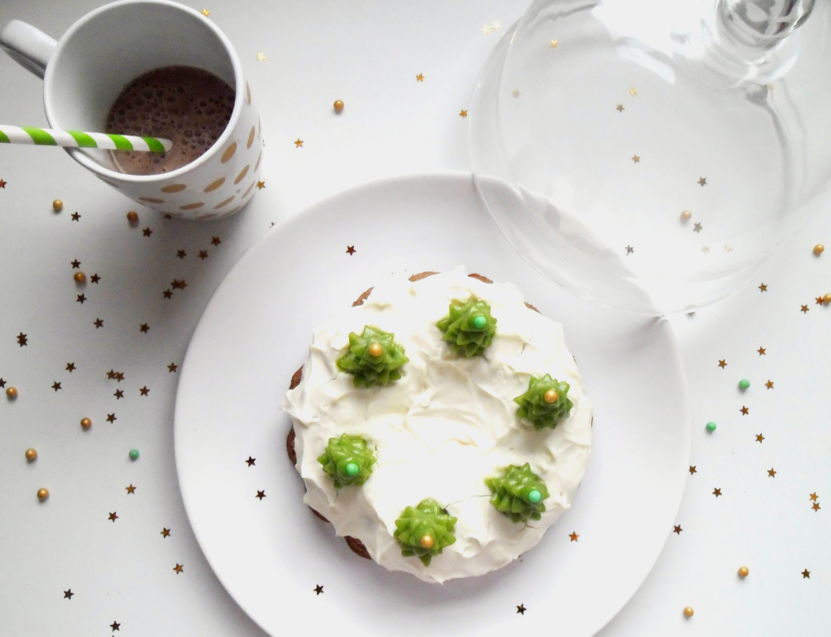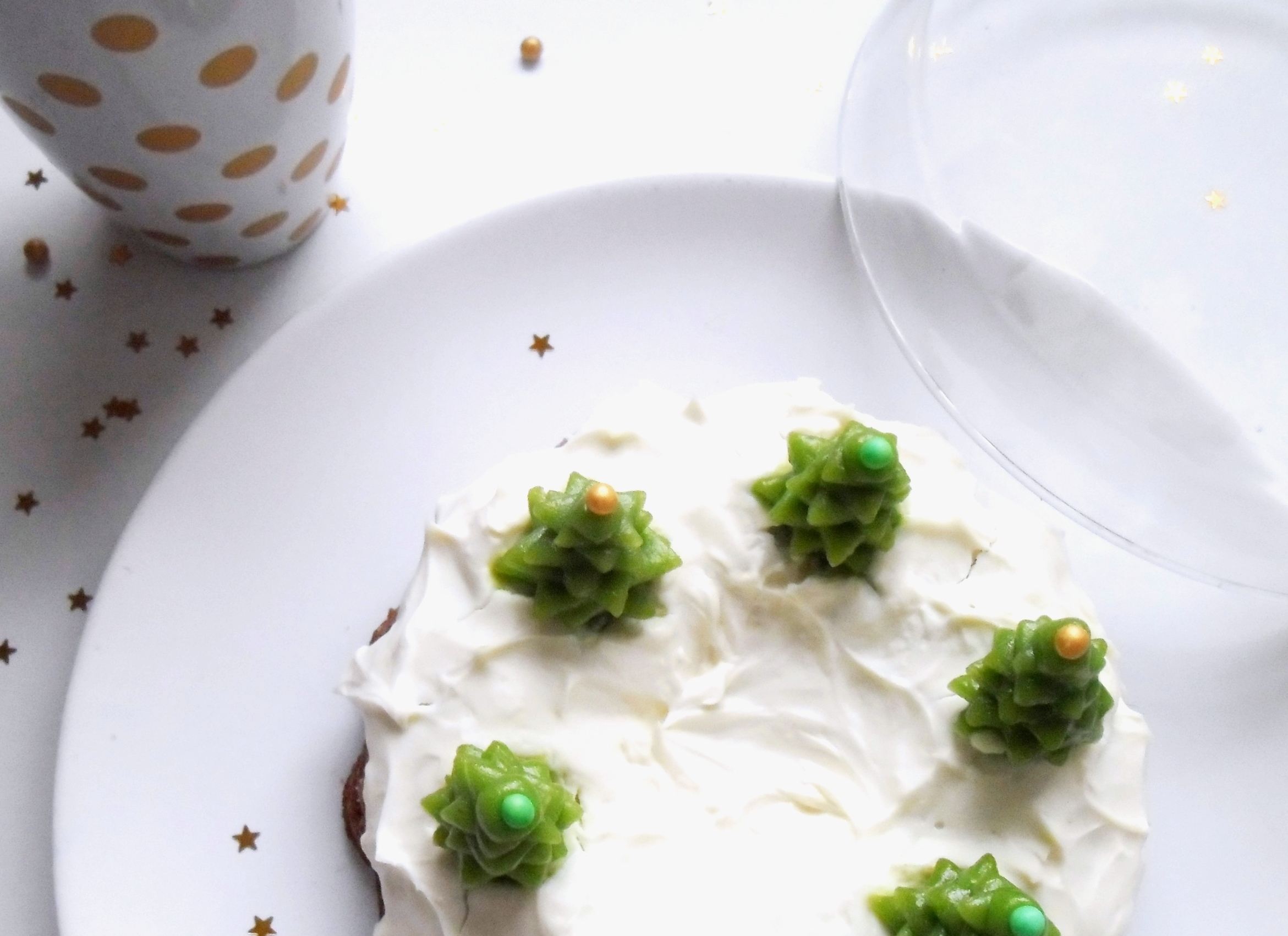 … Cake refroidi, glaçage aussi et sapins et carrot cake réussis ! Bon appétit …