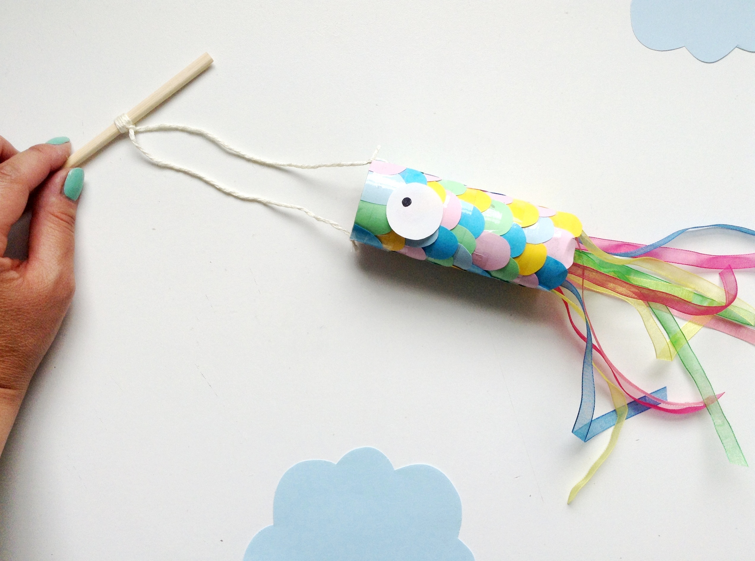 Vendredi sera en effet le jour des enfants puisque ce jour marquera la fin de l’année et le début des vacances d’été pour nos petits écoliers … et pour remercier Chloé, la maîtresse, on a donc confectionné, mon Shayan d’amour et moi, cette petite carpe colorée, façon cerf-volant japonais.