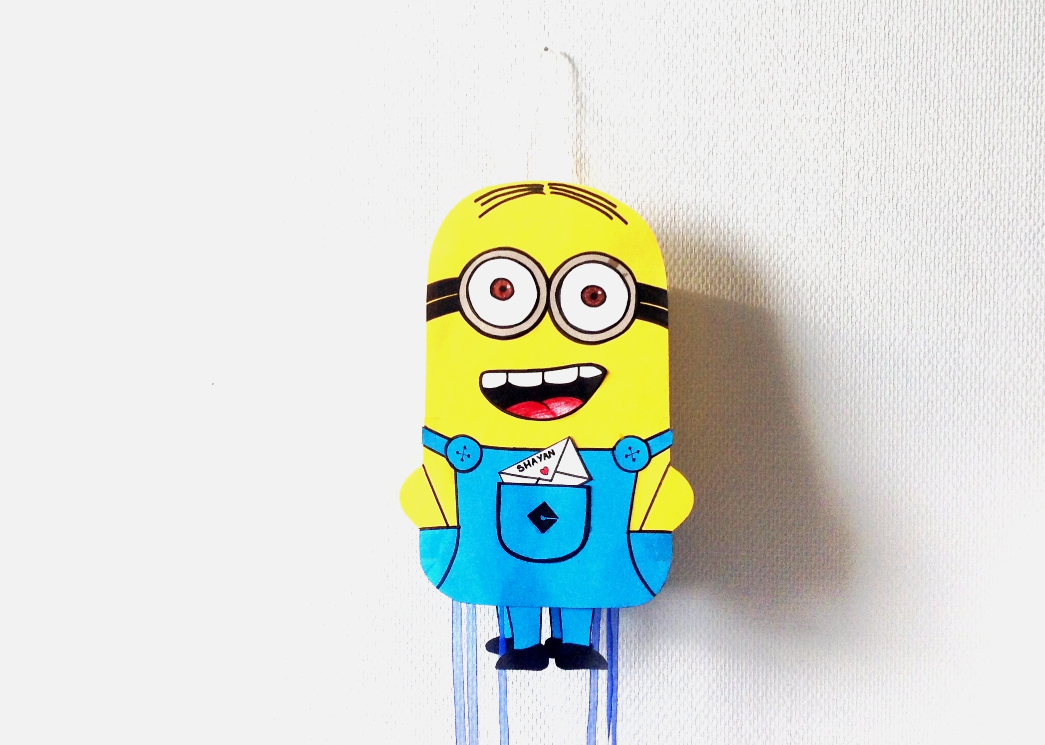 Fan de Pharrell Williams, comme maman [ qui l’a d’ailleurs vu en concert la semaine dernière … gniiiii ! ] et de Moi, Moche et Méchant et de sa bande de Minions, comme maman également, nous avons décidé tous les 2 que samedi serait la Minion Happy Party !!! Pour l’occasion, j’ai donc confectionné un Minion Surpriz, façon pinata, mais avec tirage de rubans plutôt que lynchage au bâton [ aïe … ça fait trop mal … ce serait trop moche et méchant … pauv’Minion … ].
