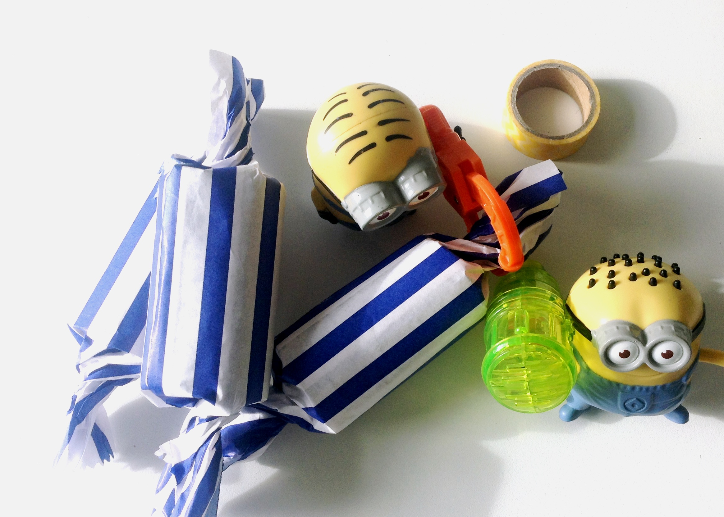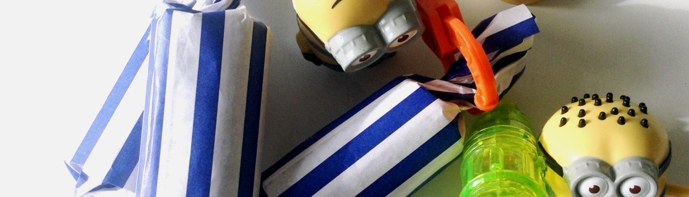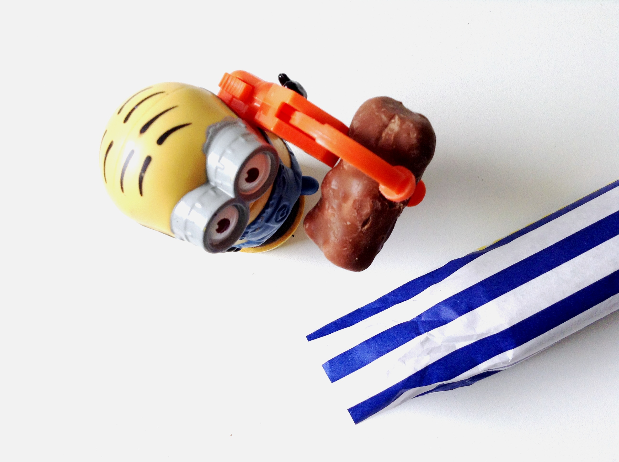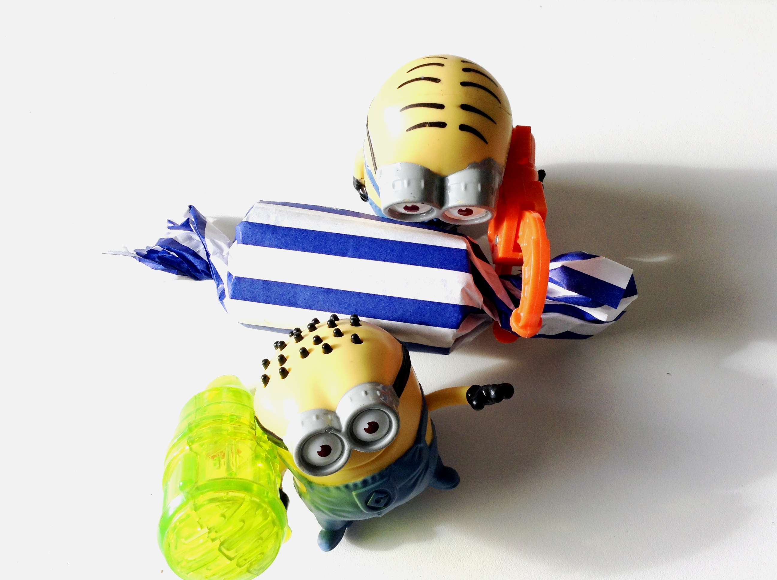 Après la confection de la pinata » Minion Surrrrpriiiiiz « , voici le deuxième épisode des préparatifs de la Minion Happy Party de samedi pour les 5 ans de mon Minion à moi … Et quand les Minions eux-mêmes me donnent un coup de main pour préparer et emballer les goodies, ça donne ça ! Roooooo … en plus d’être chou, ils sont quand même sympas …