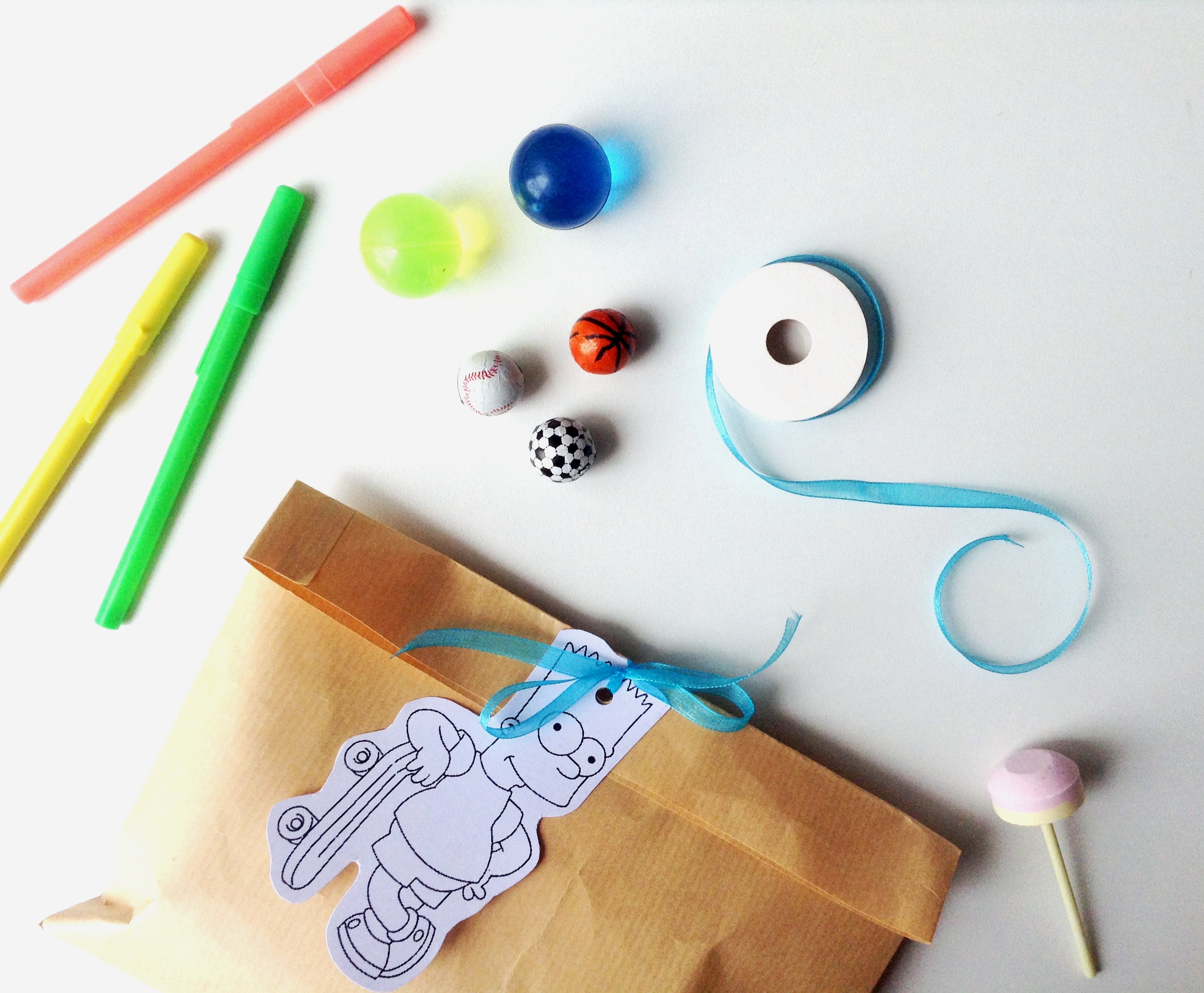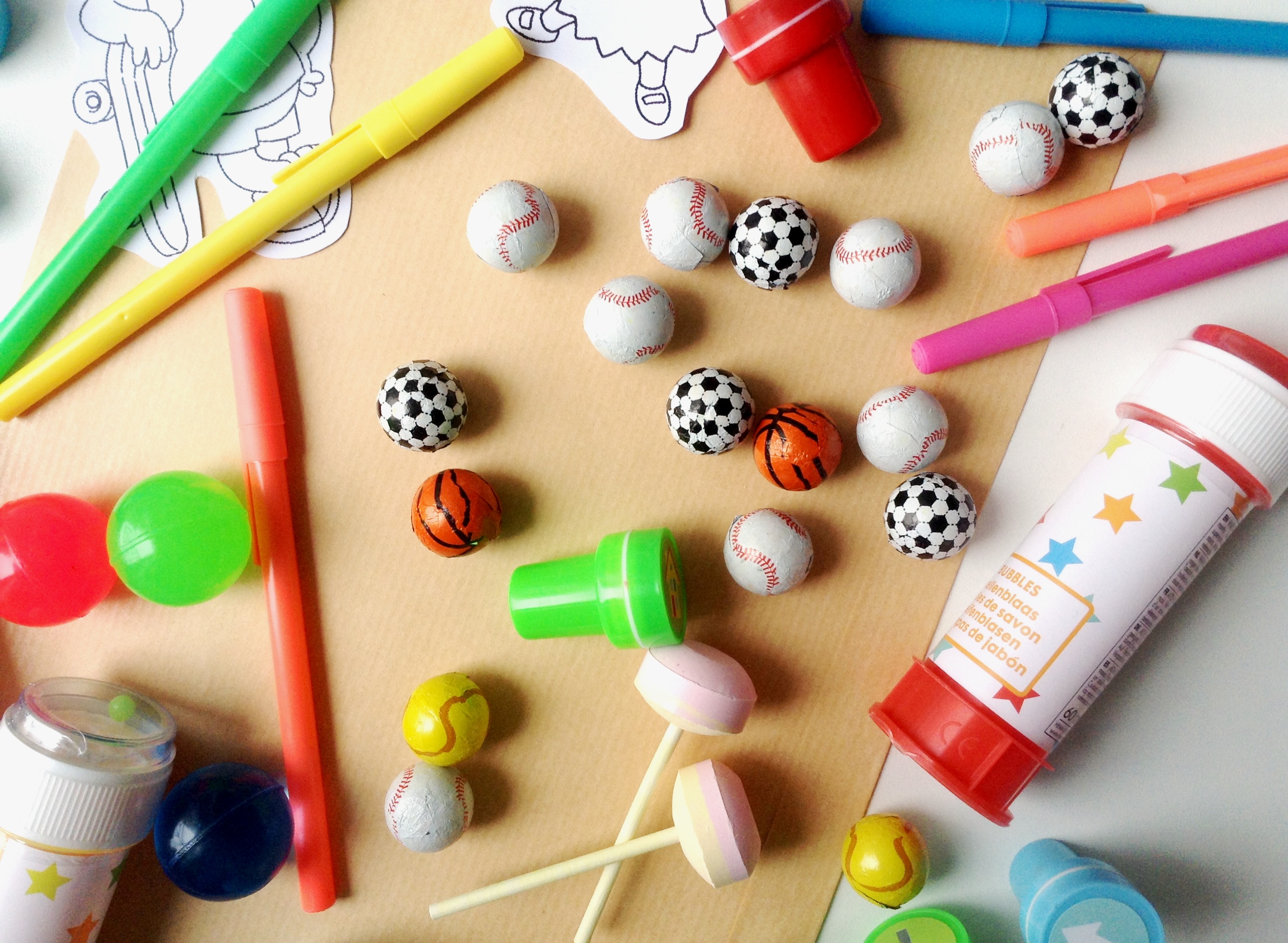 [ déco homemade parce que je m’éclate à la faire chaque année et goodies achetés chez Hema parce que plein de petits cadeaux à petits prix pour les petits invités ]
