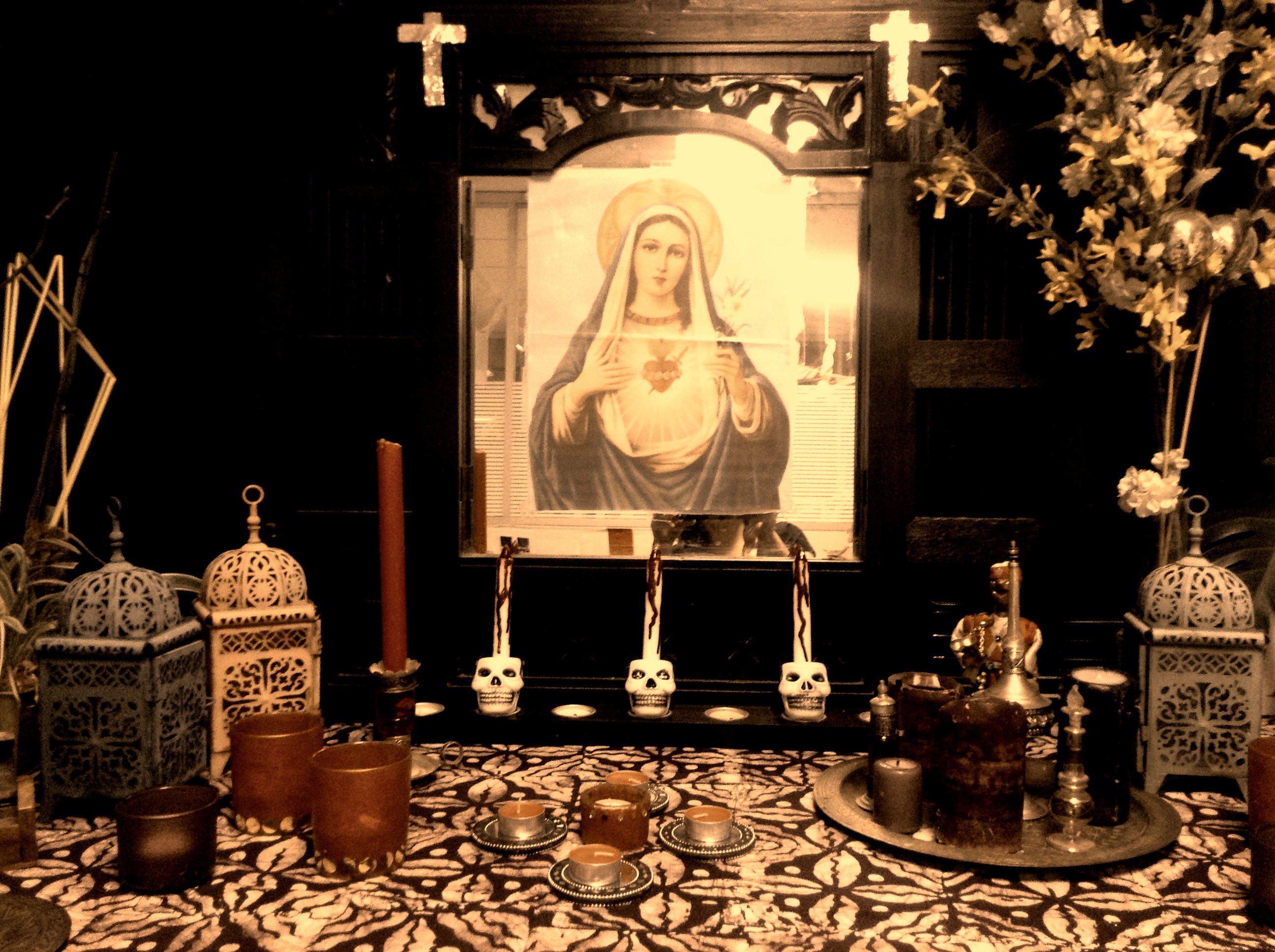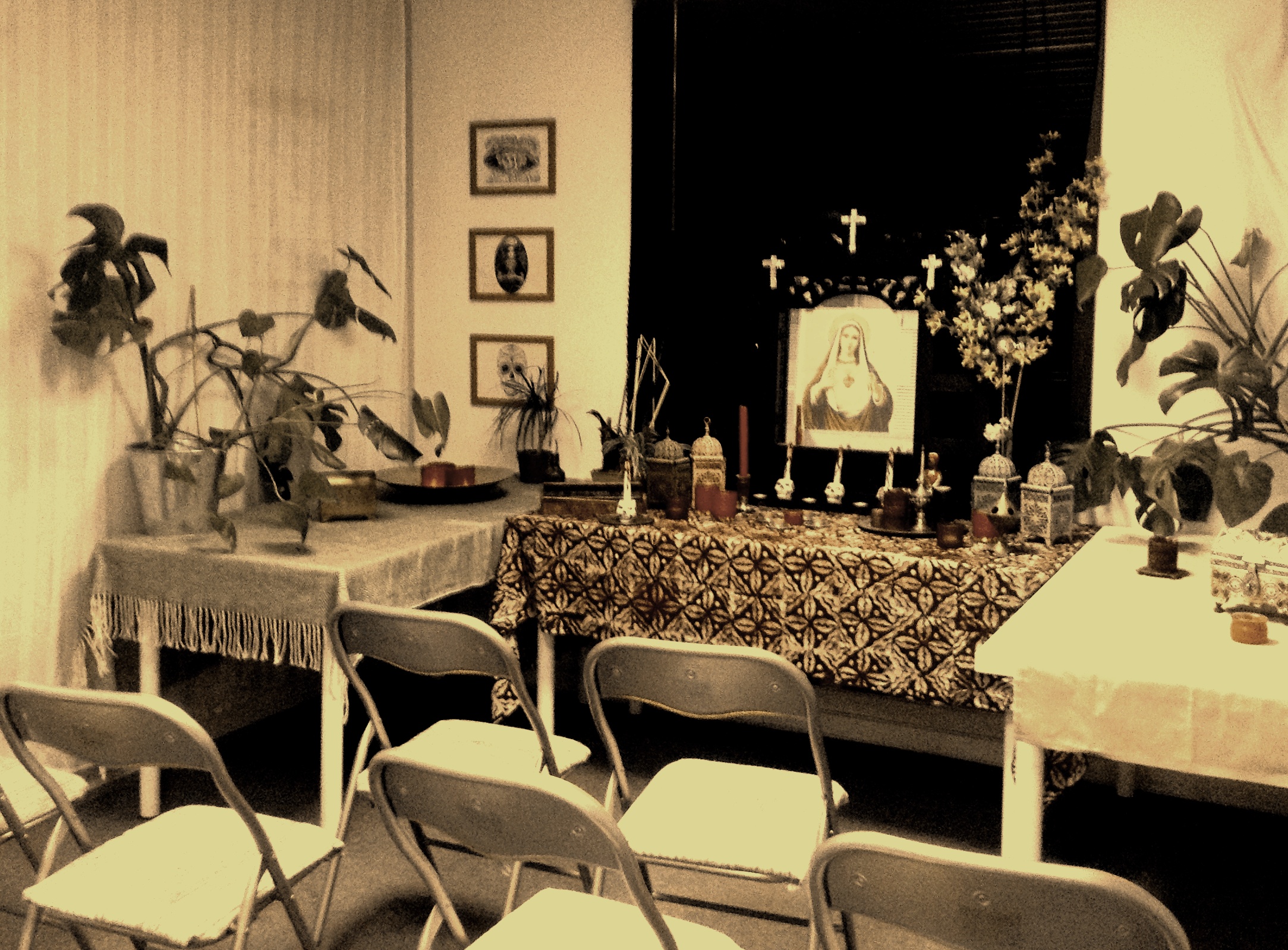 … Enfin délestés de son sac, balai, tronçonneuse, cadavre et accessoirement manteau … la visite des lieux peut continuer avec une petite prière du soir dans la chapelle … pour éviter de faire trop de cauchemars … ou se confesser … ou même faire un peu de magie noire … au choix des invités …