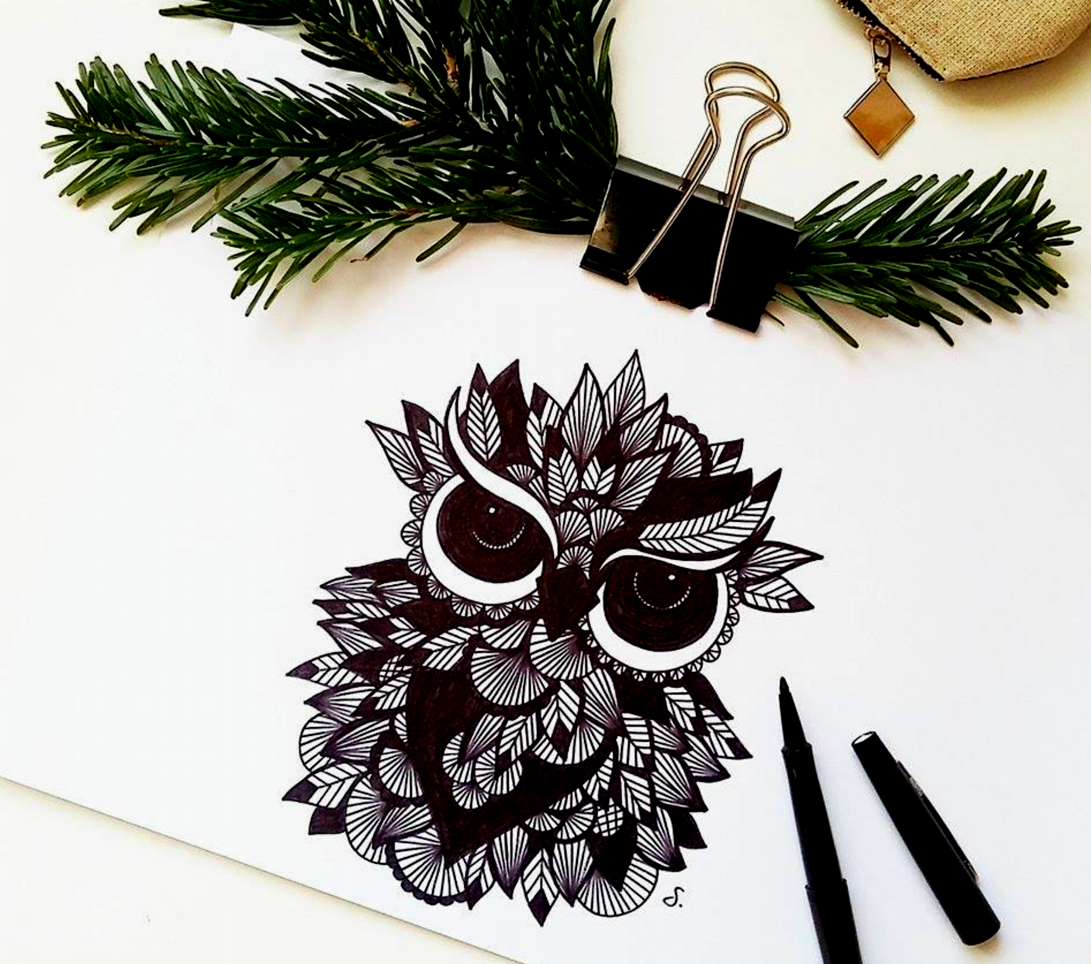 Samedi . Faire la grasse matinée et se réveiller avec un beau ciel bleu et ensoleillé. Prendre son petit déjeuner et réfléchir au programme de la journée. Puis, flâner … Vaquer à ses occupations … Prendre des photos de mes illustrations, et dessiner une petite chouette, qui rejoindra cette semaine la Black and Wild team sur le shop en ligne.