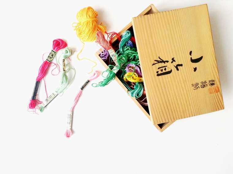 Après une longue session d’ « enlevage » de perles par millions, bien aidée par mon petit assistant de 6 ans, place à la broderie et aux couleurs.