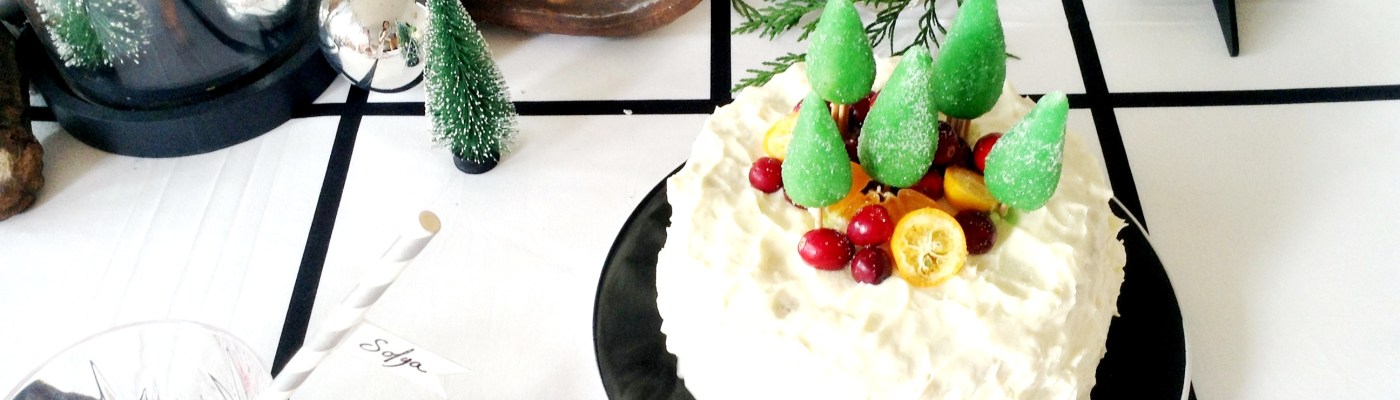 Le gâteau pour terminer, chiffon cake de 3 étages, avec mascarpone et quartiers de clémentine dedans, et mascarpone parfumée au kumquat dehors et sa déco pâte d’amande et fruitée.
