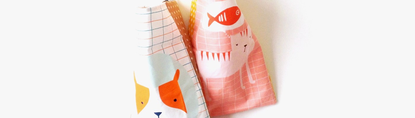 Un pti tour dans le tiroir à tissus et c’est parti. De fil en aiguille, petits torchons sont devenus maxi pochons. Le petit chat pour bébé Tahra et le petit chien pour petit boy to be.