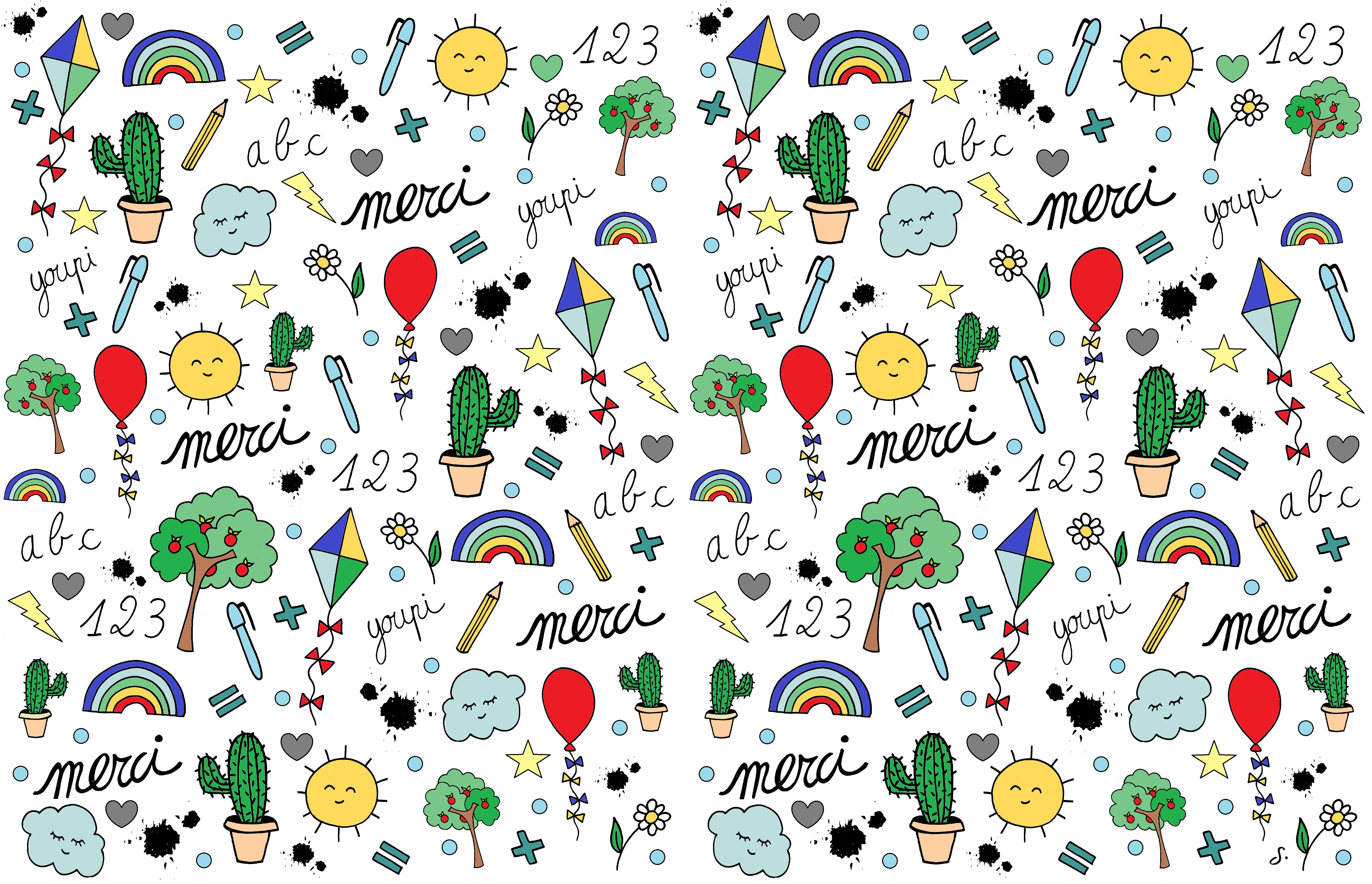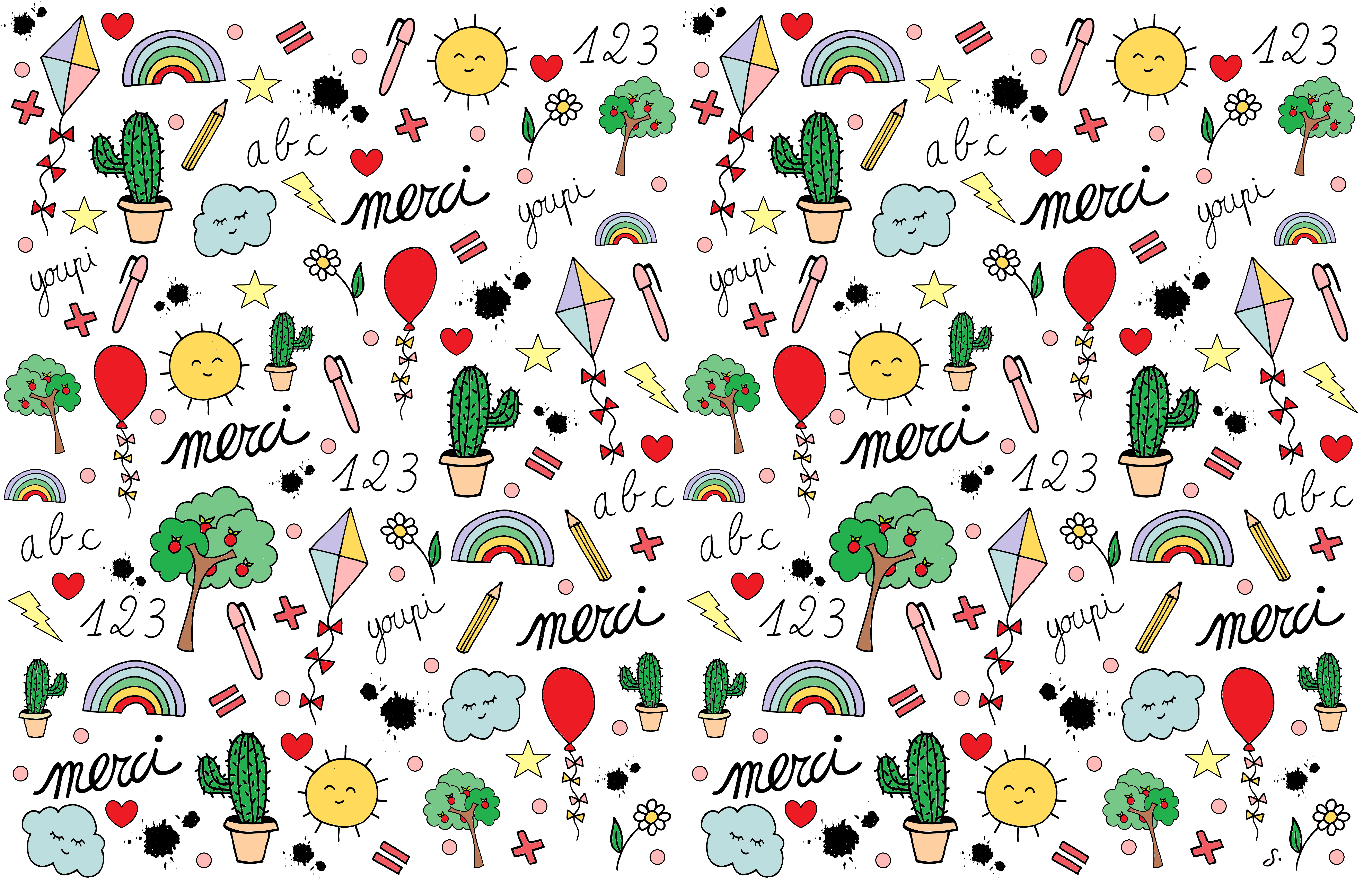 J’ai donc imaginé des pti motifs à l’esprit kidz. Du school, du nature, du météo mix … Des crayons, des soleils, des cactus … Un pti brainstorming rapide dans mon cerveau. Et hop, par ici le stylo !