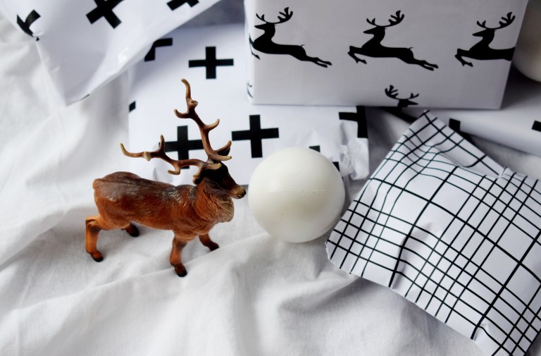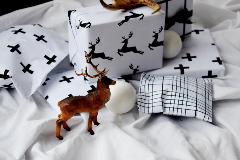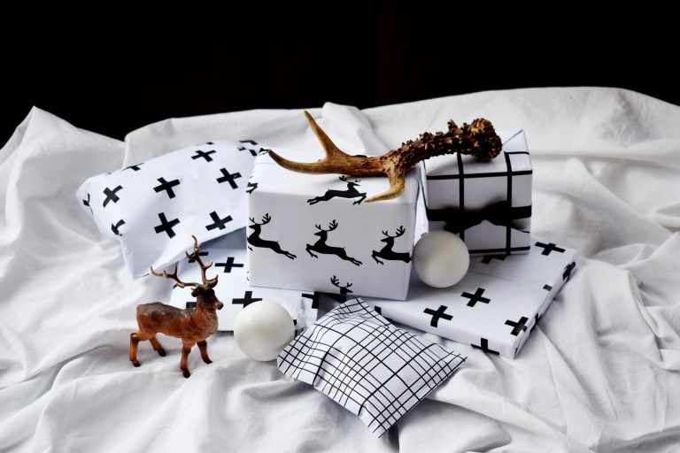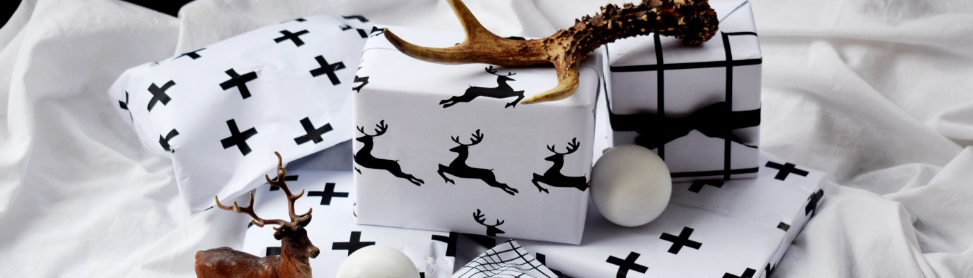 Dernière ligne droite pour l’emballage des cadeaux, à base de noir, versions Cerfs, Croix, Quadrillage et Carreaux.