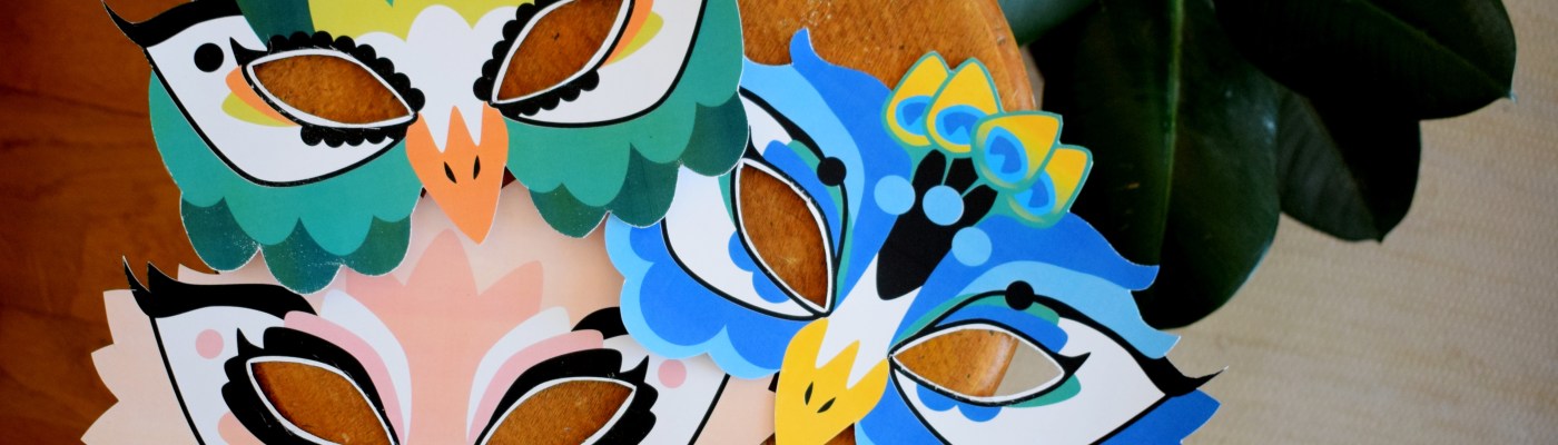 C’est pour ça que rien que pour toi, j’ai dessiné des masques pour que tu puisses t’envoler tout en couleurs et en toute discrétion au prochain bal masqué Ohé Ohé !