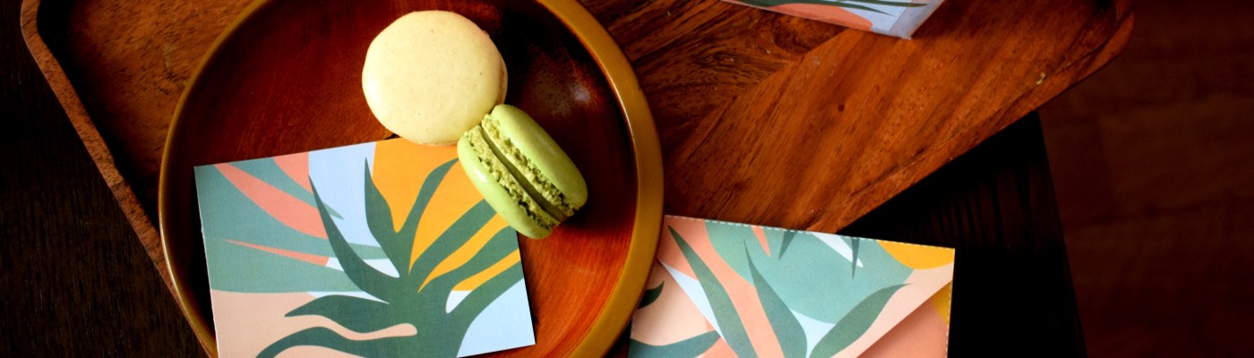 M comme Maman et comme Mini carte, dans Mini enveloppe + Macarons dans Mini box, à l’imprimé plutôt tropicool et à imprimer et confectionner si l’envie vous prend.