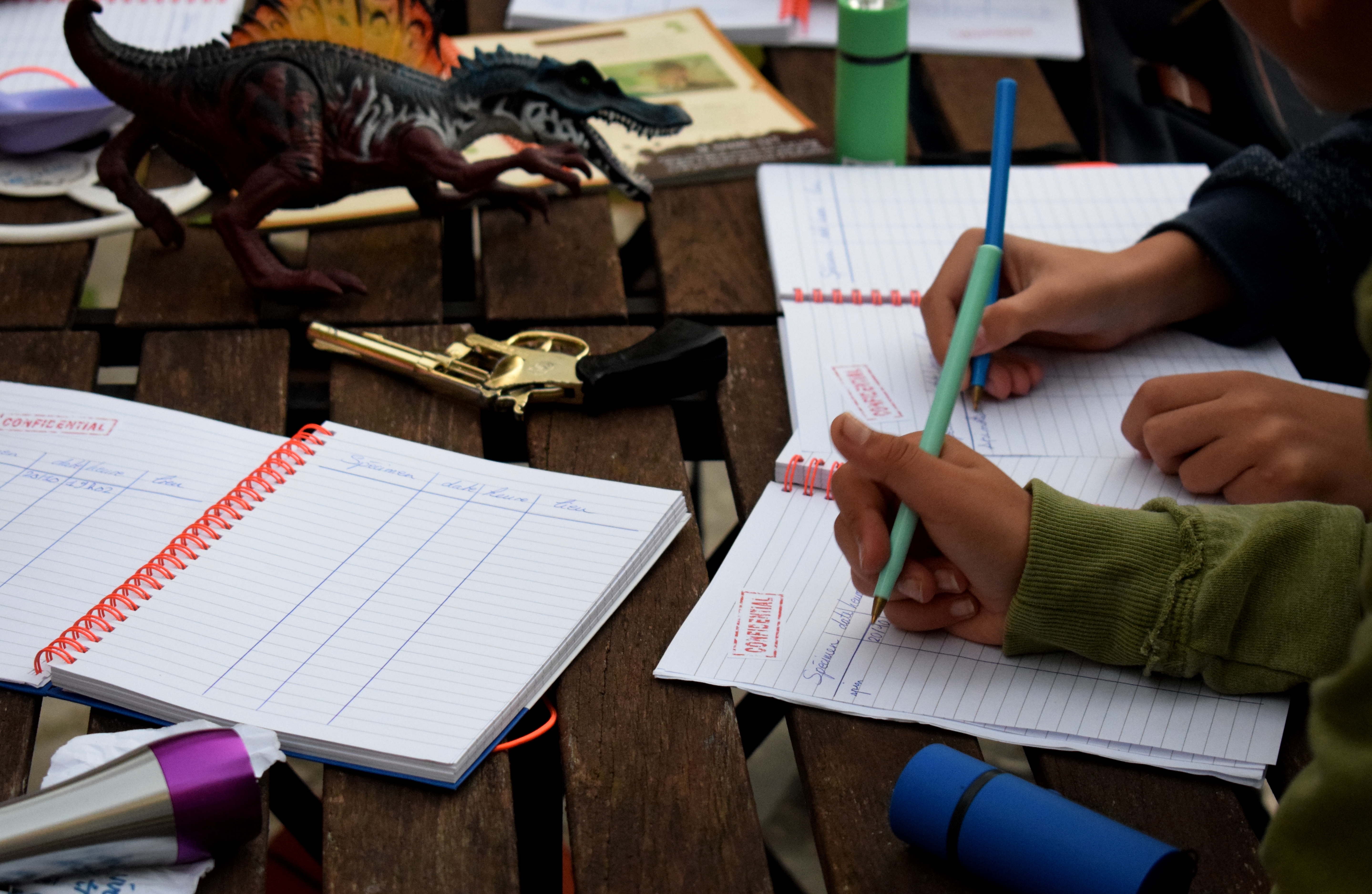 Une fois parée et équipée, tous munis de lampe de poche, la fine équipe s’était réunie pour déchiffrer le premier message qui les avait propulsés en pleine nature hostile, en proie à tous les dangers, sur les traces des dinosaures et de leur compère scientifique disparu.