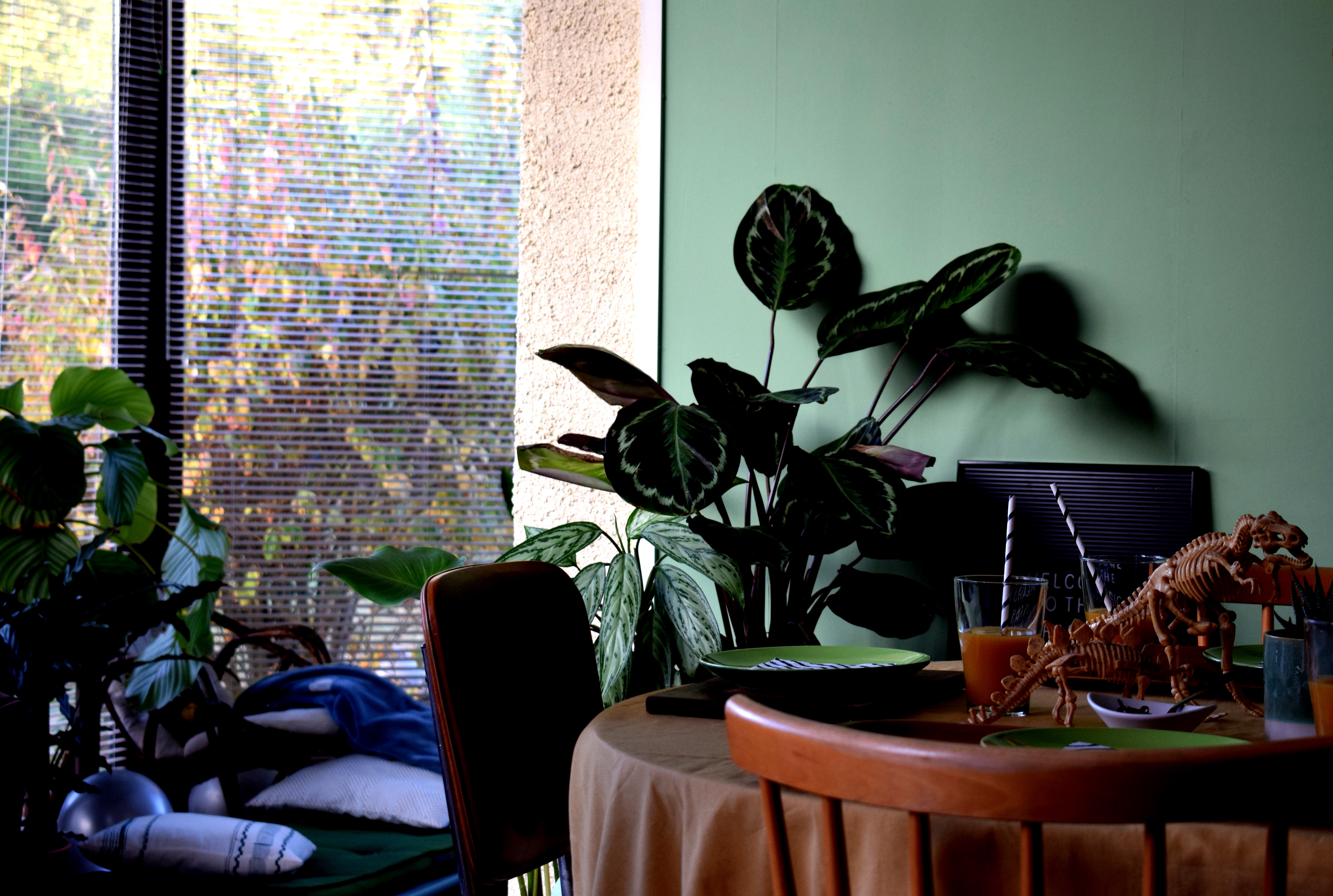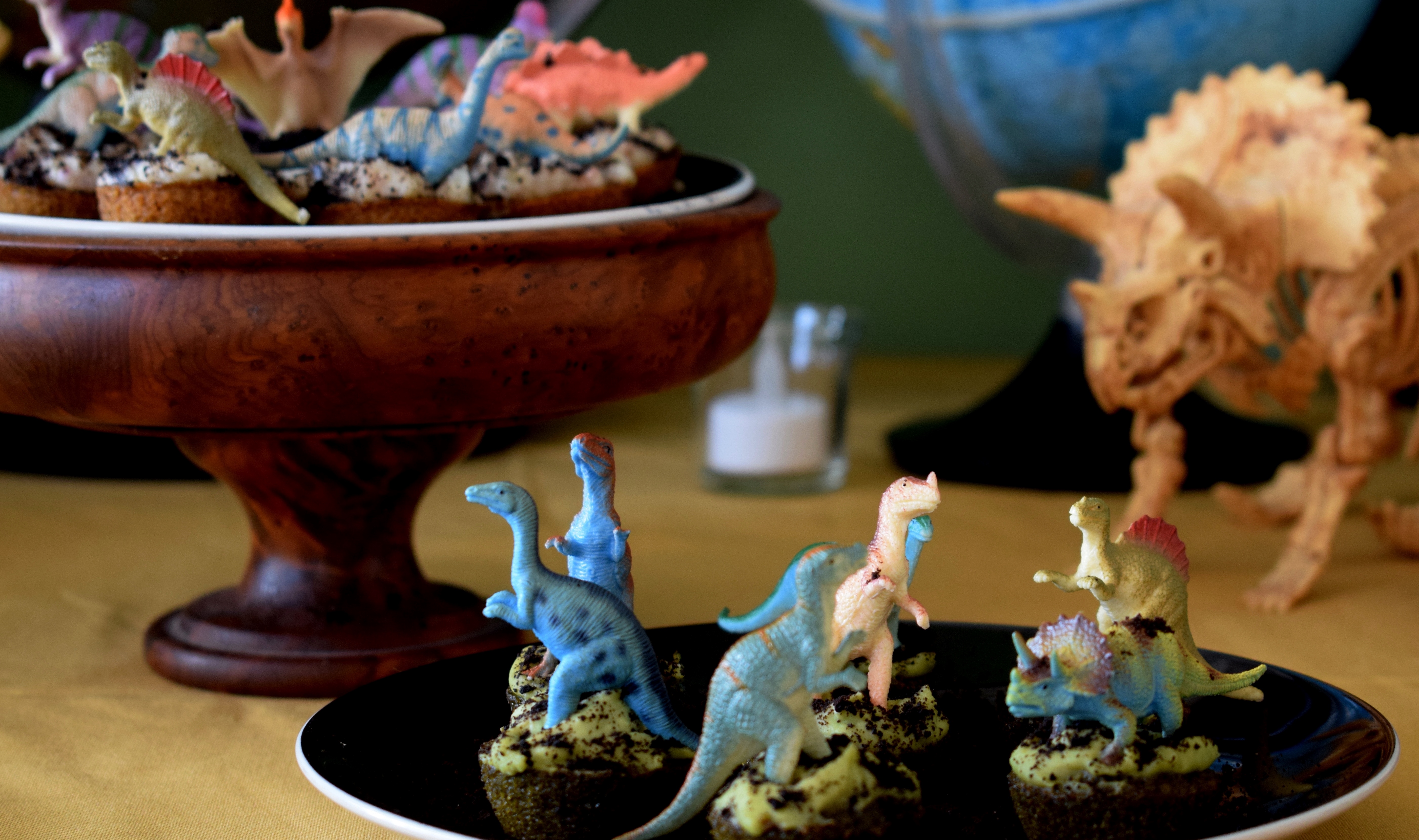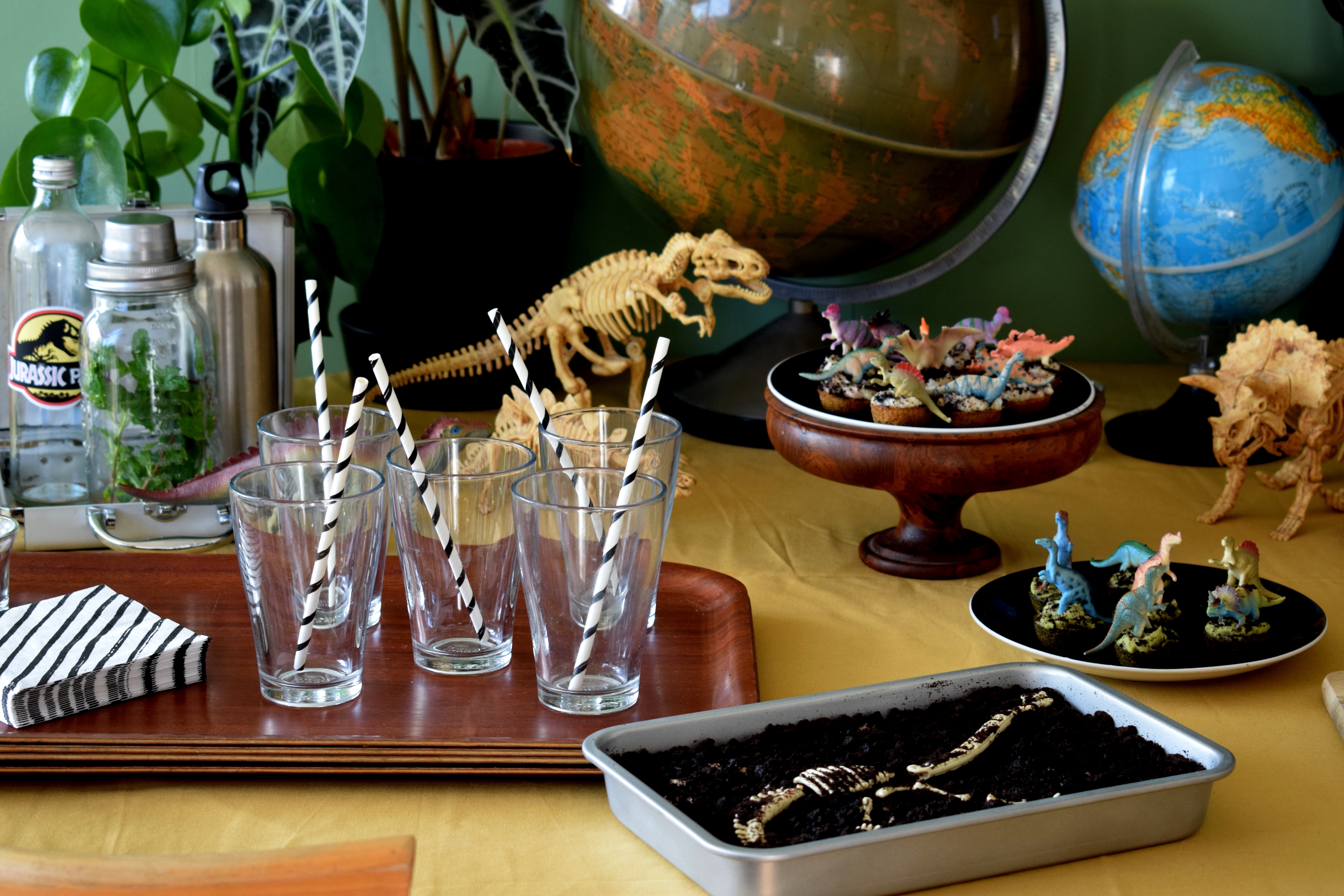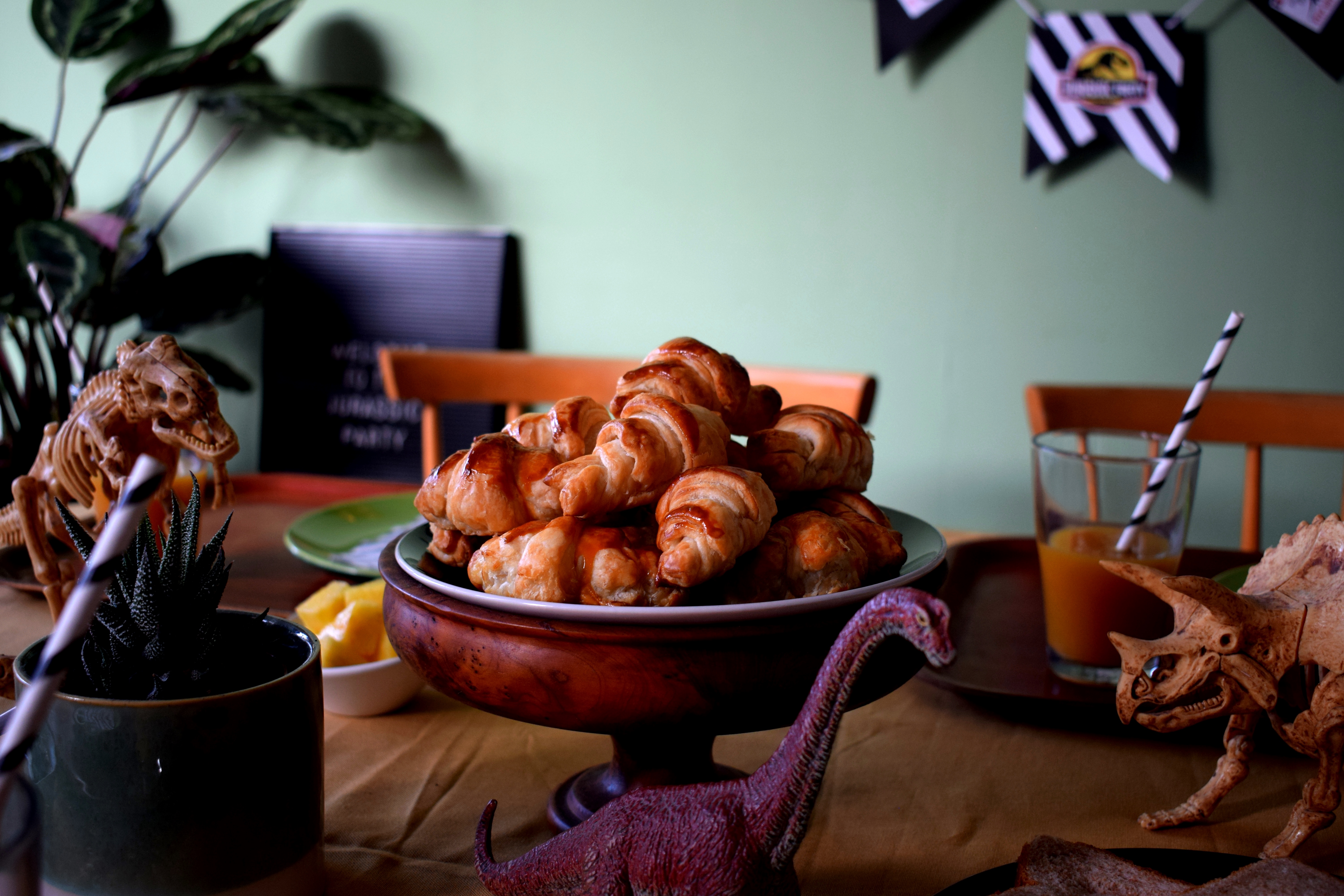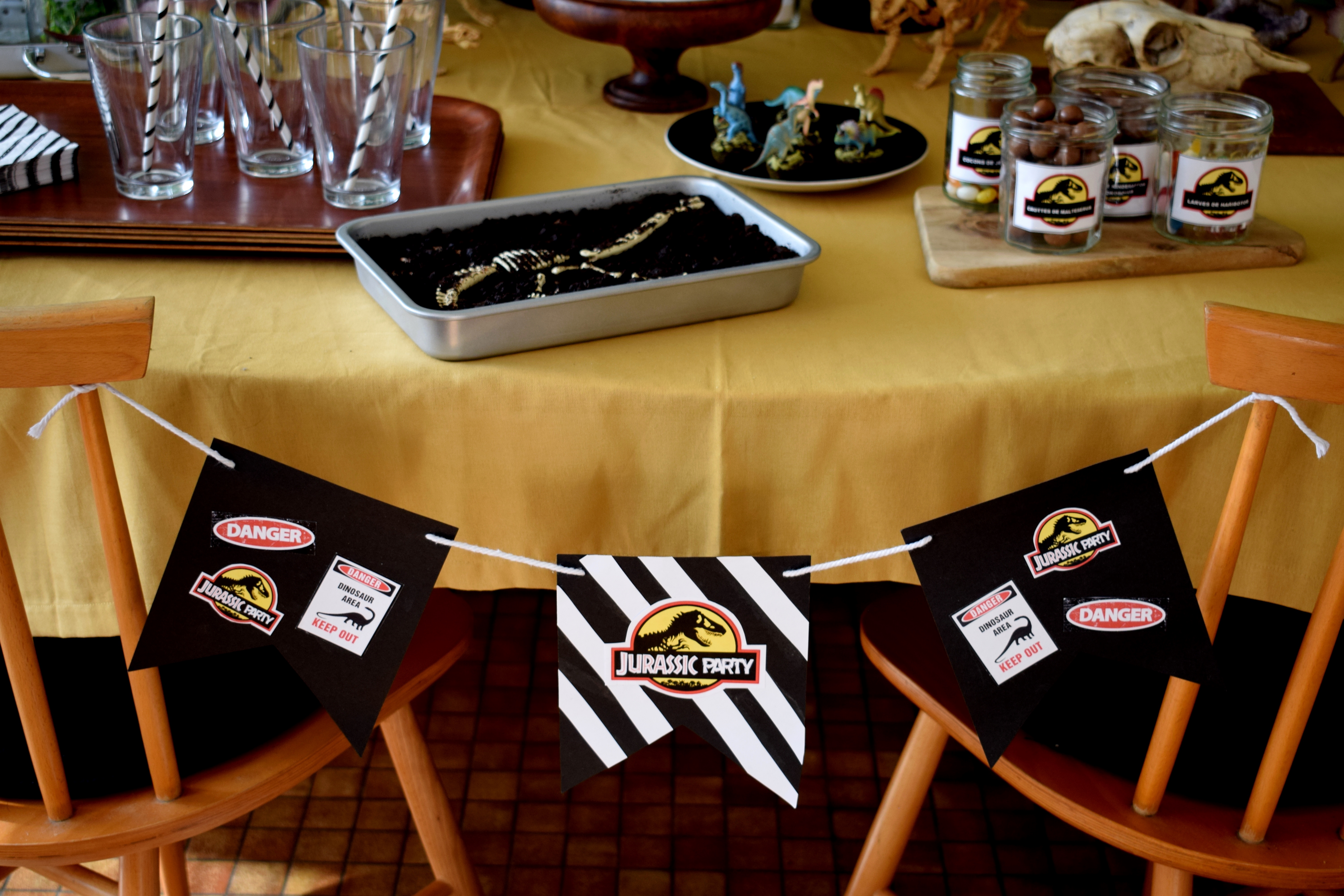 Cadre, plantes, dinos, globes, pierres, gâteaux, gourmandises, crâne, chapeaux, banderole et encore dinos … Un pti mélange sauvage pour des enfants bien gourmands mais sages.