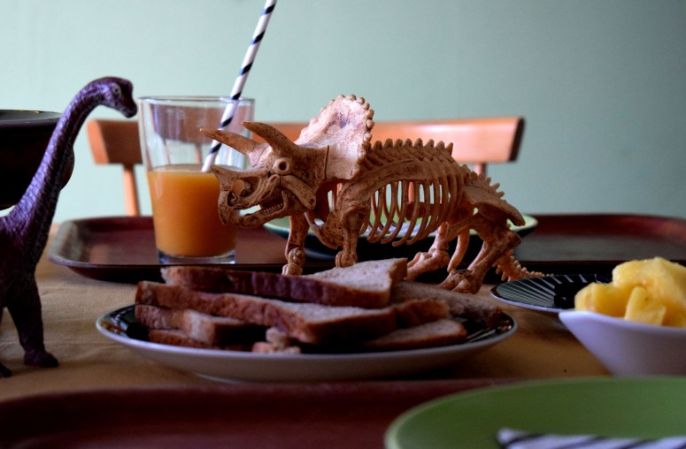 Pour THE gâteau, la recette qui marche à tous les coups et qui ne laisse personne indifférent, j’ai nommé le fondant au chocolat de Trish Deseine. Une tuerie tout simplement, cuite dans un moule rectangle, où gisait le squelette d’un dinosaure [Diplodocus, il semblerait] que notre team de paléontologues s’était empressée de déterrer, sous une fine couche d’Oréo émiettés, avant de dévorer le gâteau tout entier, telle une horde de T-Rex affamés !