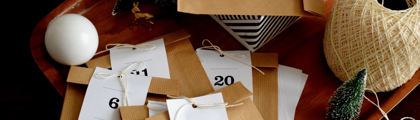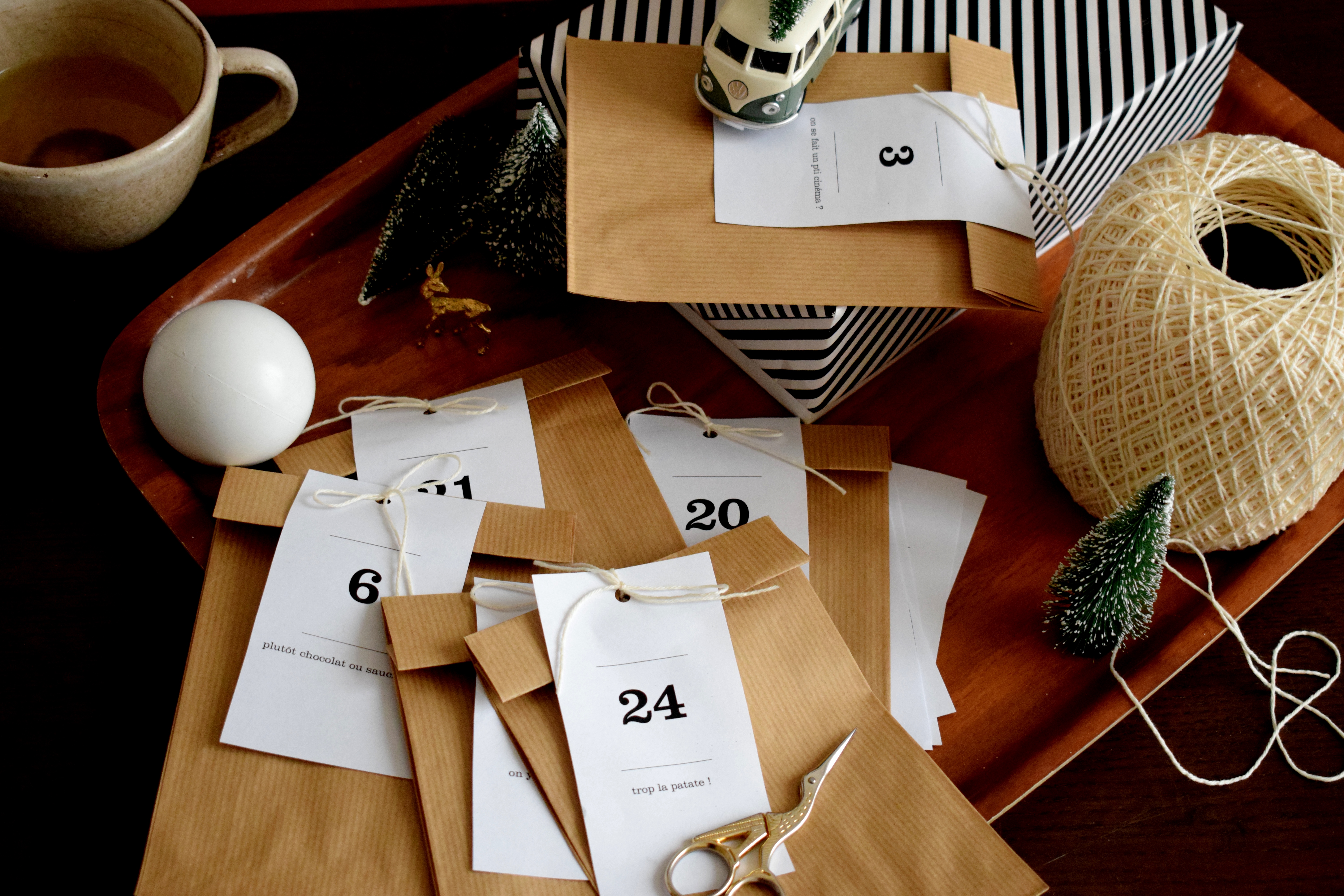 Allez hop ! Il ne reste plus qu’à remplir les pochettes de gourmandises en chocolat, de les suspendre à un fil à la mode guirlande, d’attendre avec impatience dimanche 1er décembre et de découvrir les messages et surprises le matin au réveil … et puis voilà !